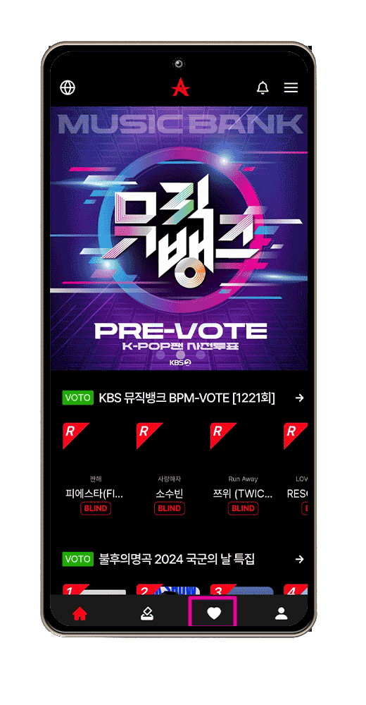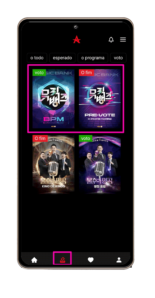Na tela inicial do aplicativo do All Chart, vá para a aba de votação.