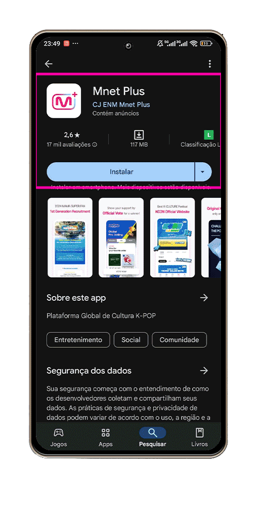 A Mnet é uma plataforma global, que possibilita você a votar no MCountdown, com pré-votações e votação ao vivo.Primeiro! Vamos fazer o login no aplicativo!